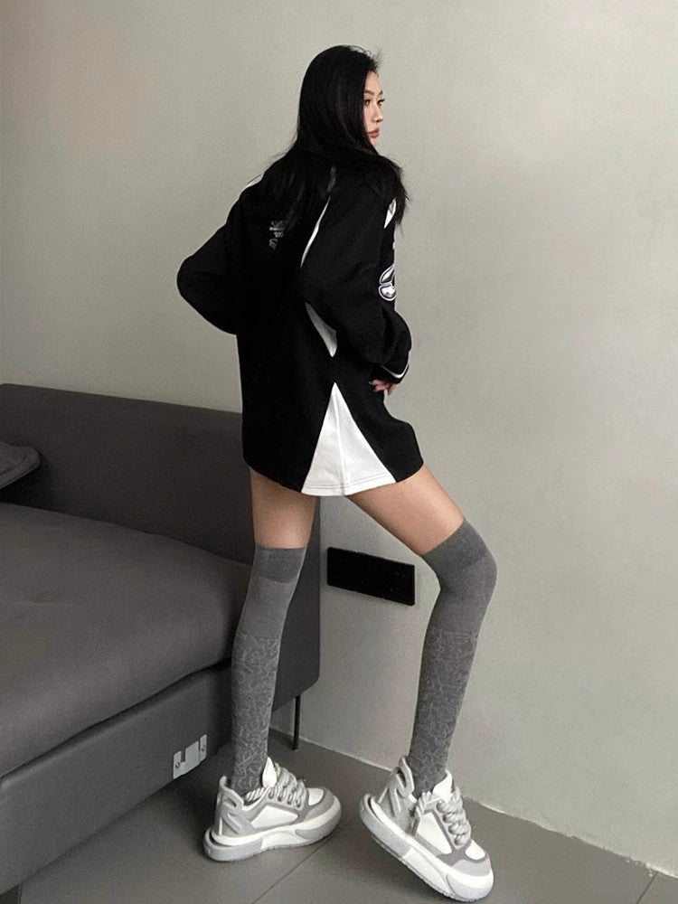 Oversized V Neck Sports Sweatshirt Trendy Casual Fashion Street Style Top