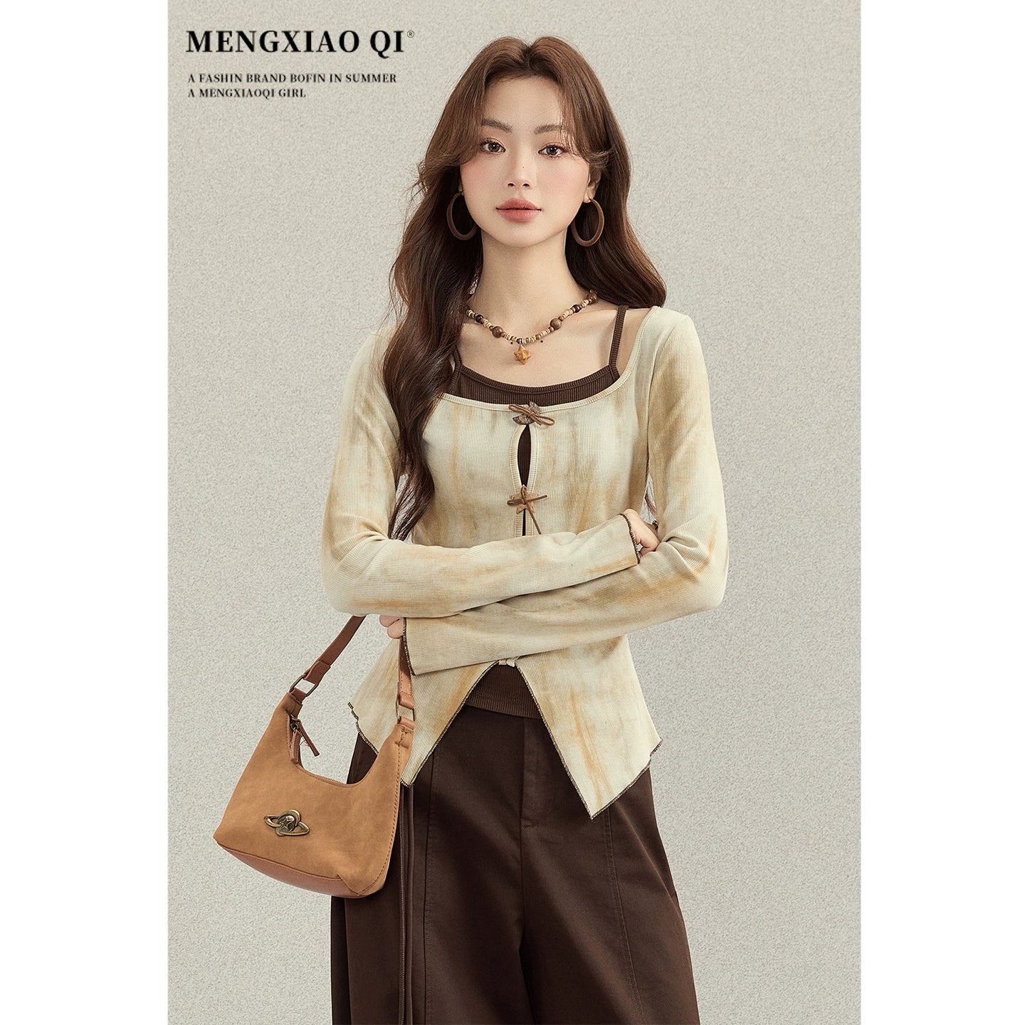 Chic Retro Long-Sleeve Top: Women's Autumn Color Block Pullover Design
