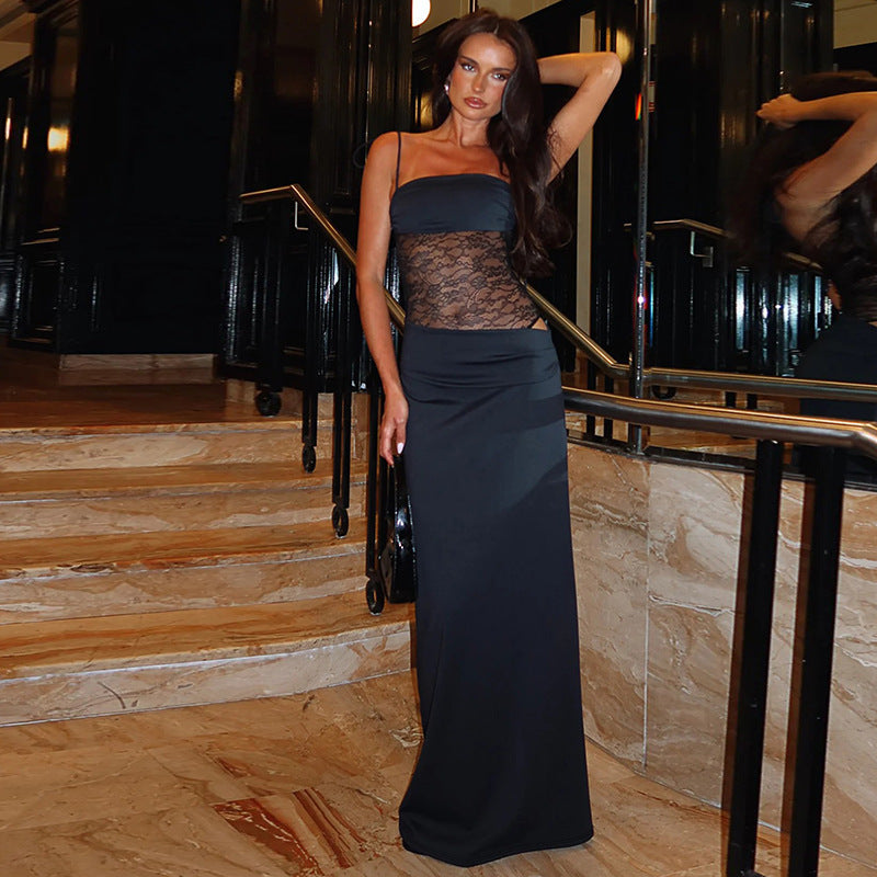 Elegant Lace Off-Shoulder Slim Fit Side Slit Maxi Dress