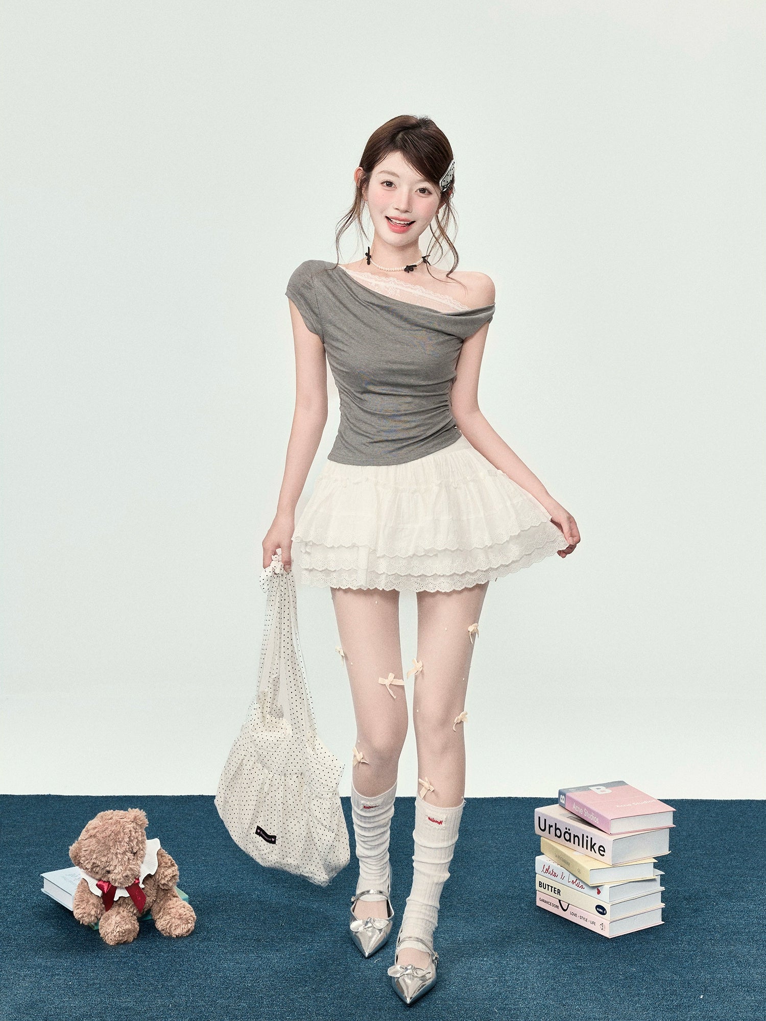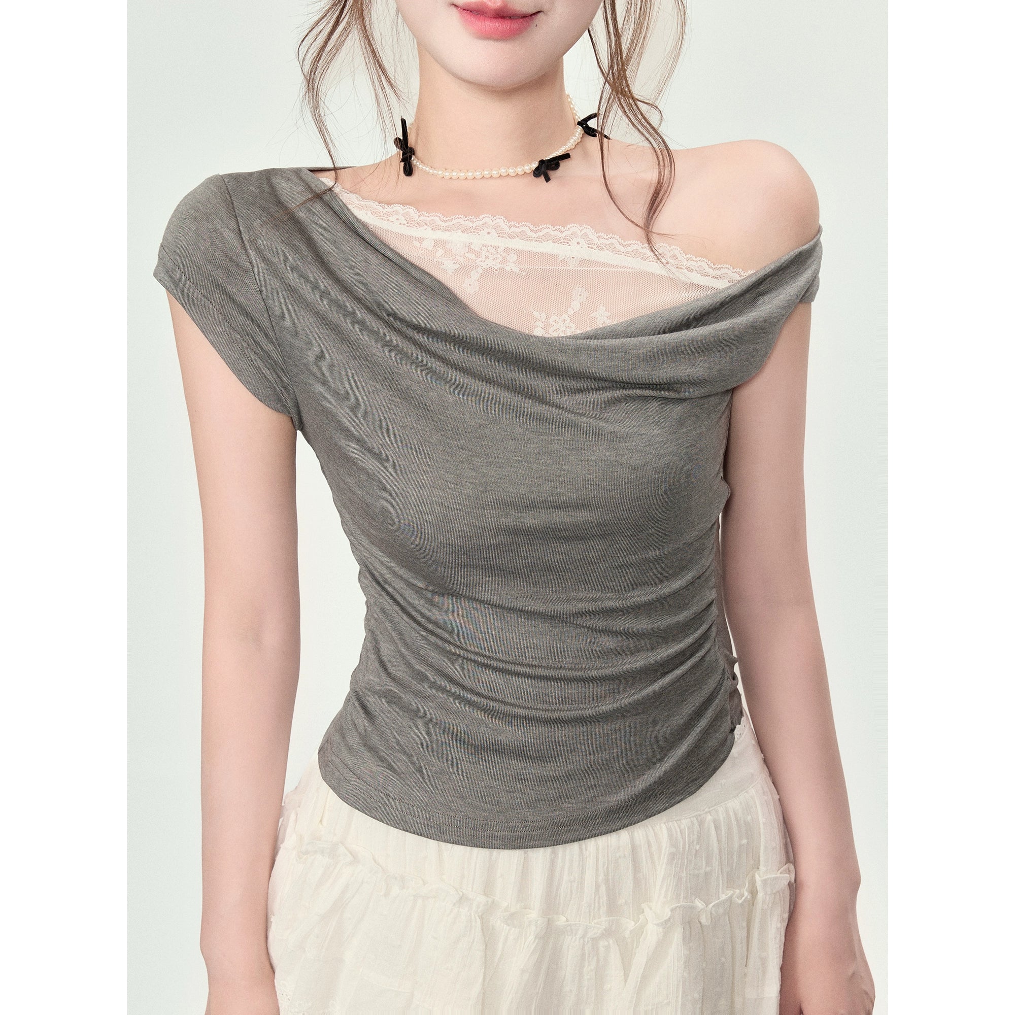 Elegant Women's Off-Shoulder Lace T-Shirt, Summer Side Shoulder Swinging Collar Top