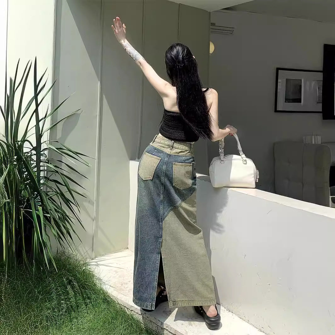 High Waist A Line Denim Skirt Mid Length Retro Casual Fashion for Women