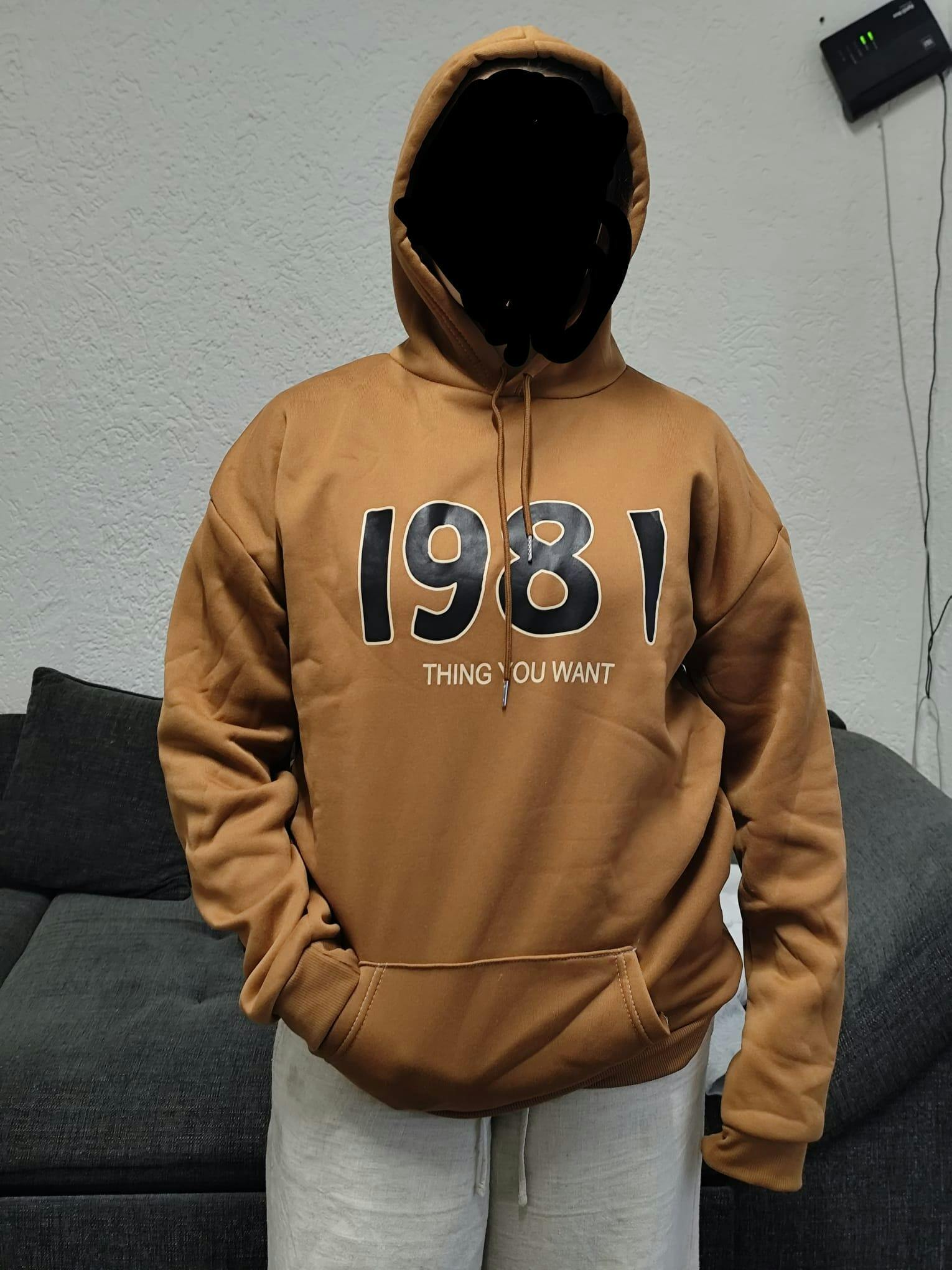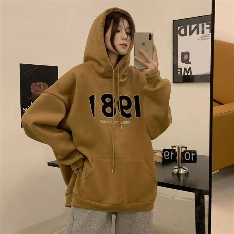 Khaki Fleece-Lined Hoodie – Warm Mid-Length Pullover Sweatshirt