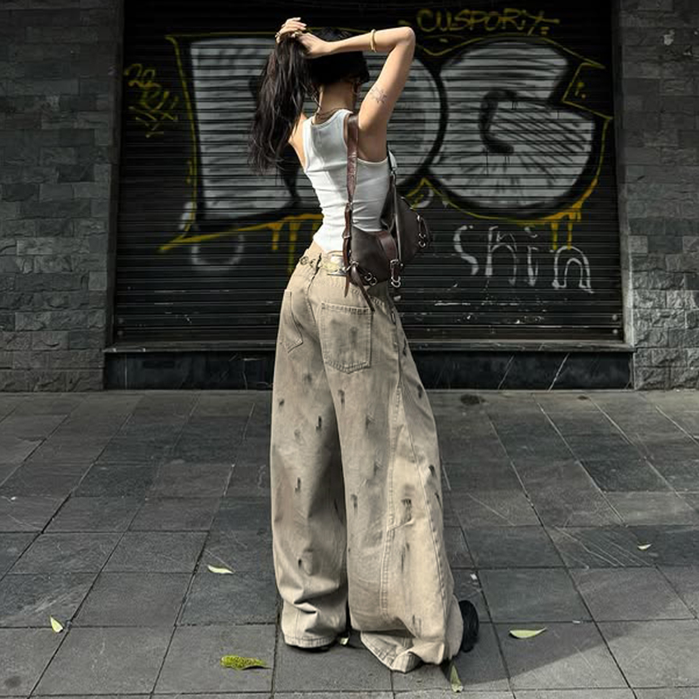 Low-Waist Distressed Wide-Leg Jeans – Baggy Streetwear Denim for Everyday Casual Outfits